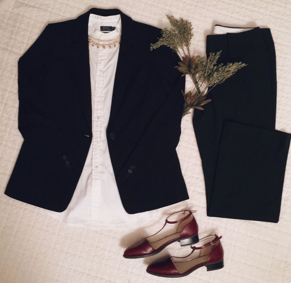 The power suits of all suits. This is a look anyone can pull off because you probably already have the core essentials in your closet. Match a classic pair of black trousers with a fitted black blazer and you're good to go! Want to add some color? Incorporate some color from your shoes to complete the look. Who says black has to be boring?