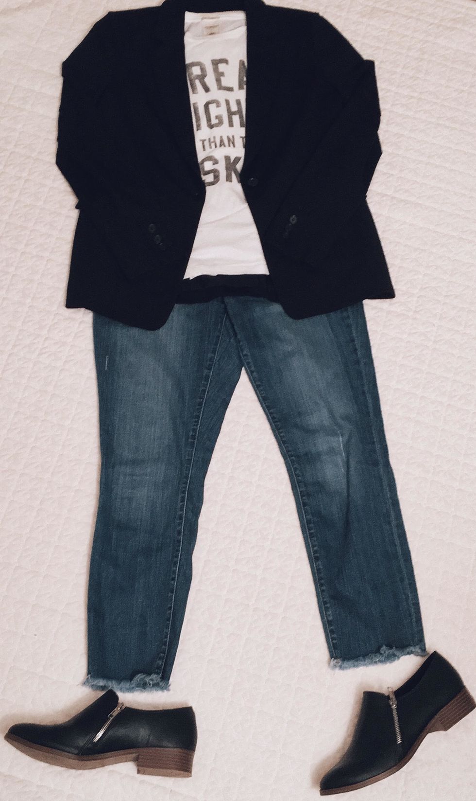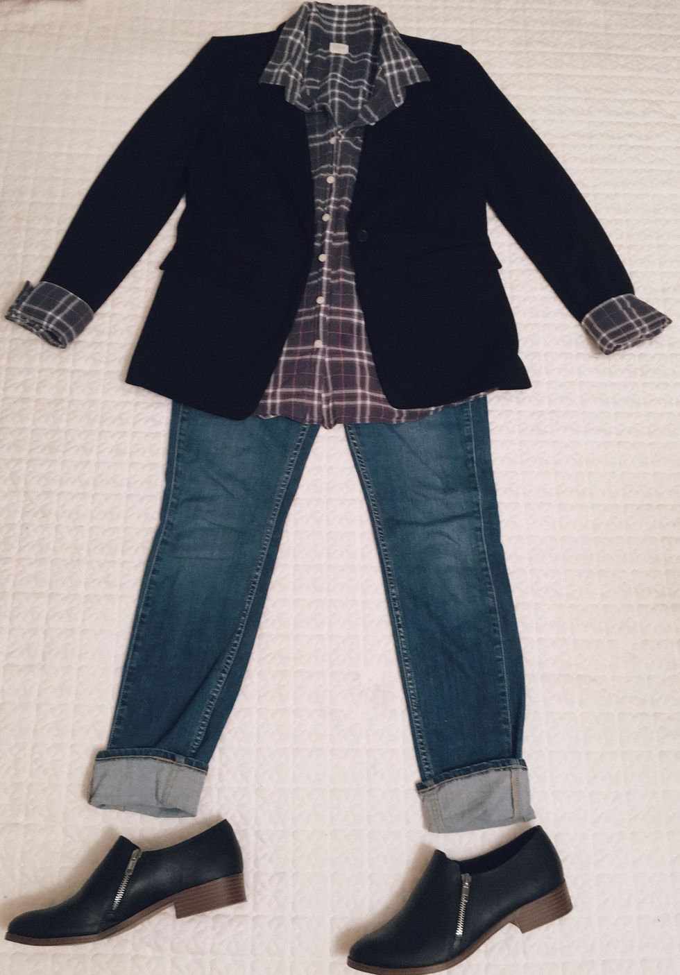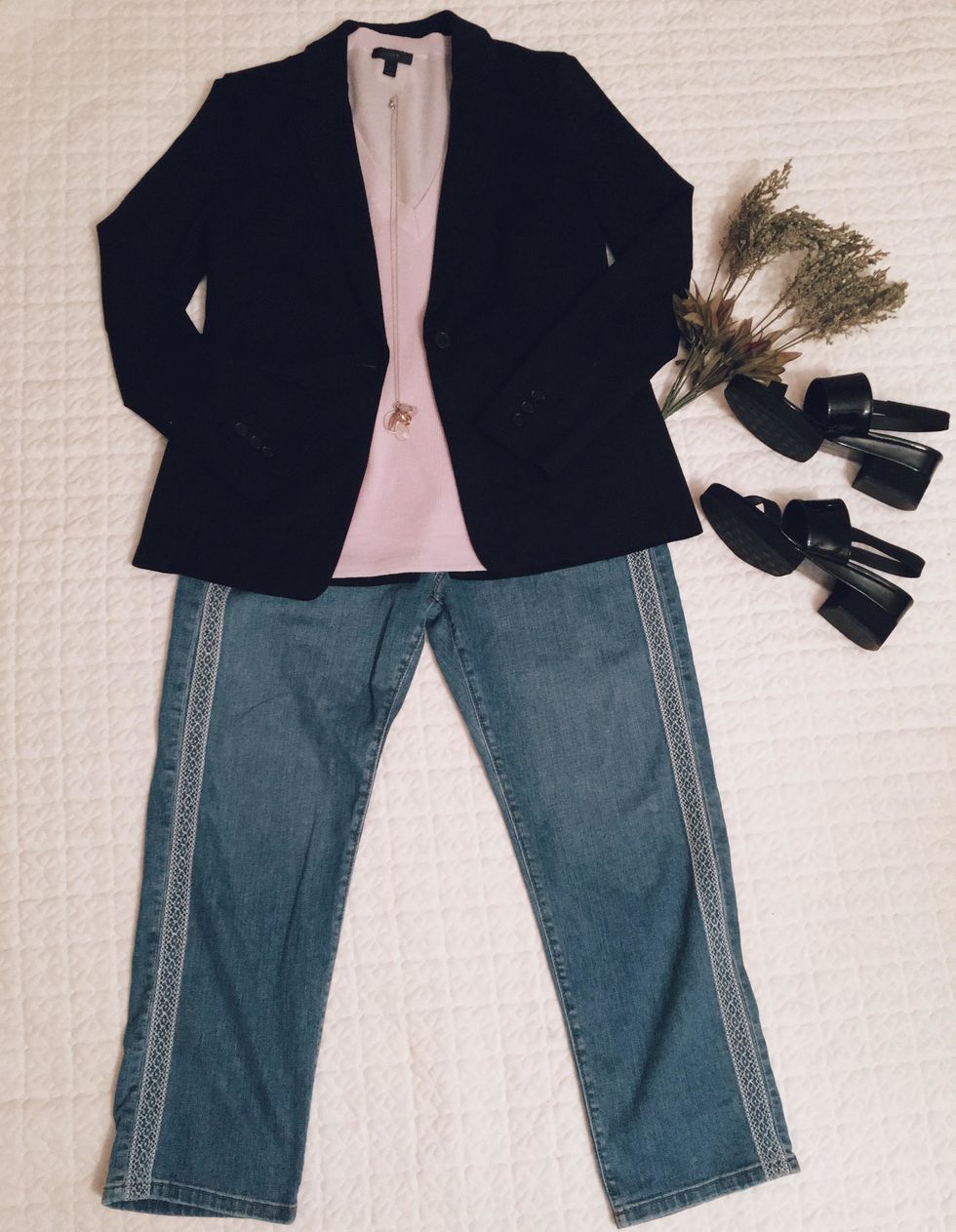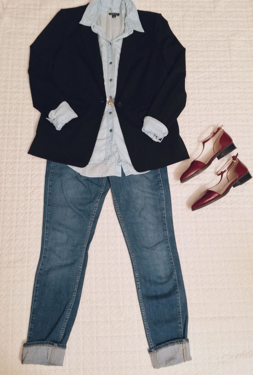 Remember that no denim-on-denim rule? Yeah me either. Easily break up your denim-on-denim look with a black blazer.