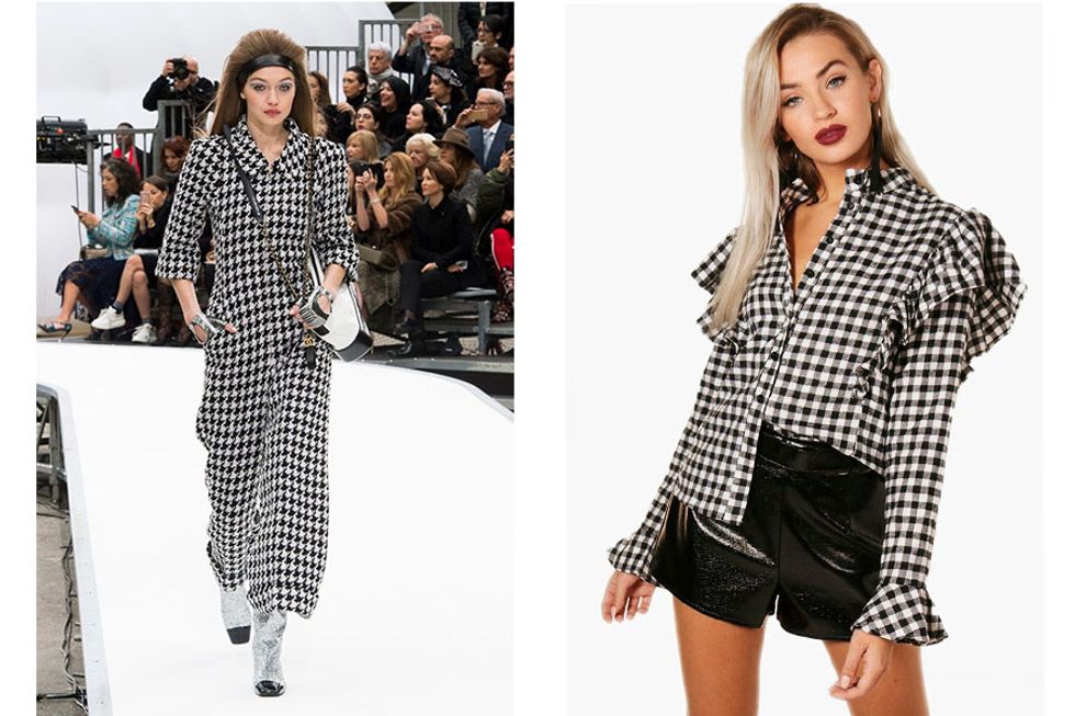 ON THE RIGHT: Ellie Gingham Ruffle Shirt; $17.00 @ Boohoo.com