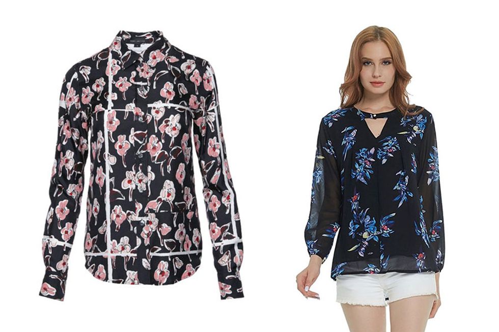 ON THE RIGHT: WLLW Women Floral Chiffon Long Sleeve Blouse; $11.99-$15.99 @ Amazon.com
