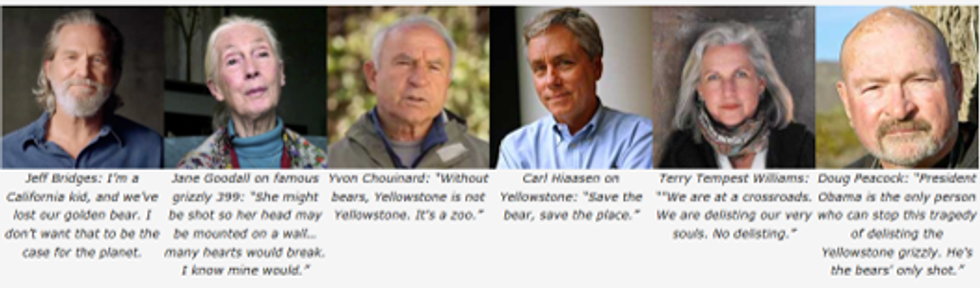 Popular voices against the hunt and delisting of grizzlies include the following.