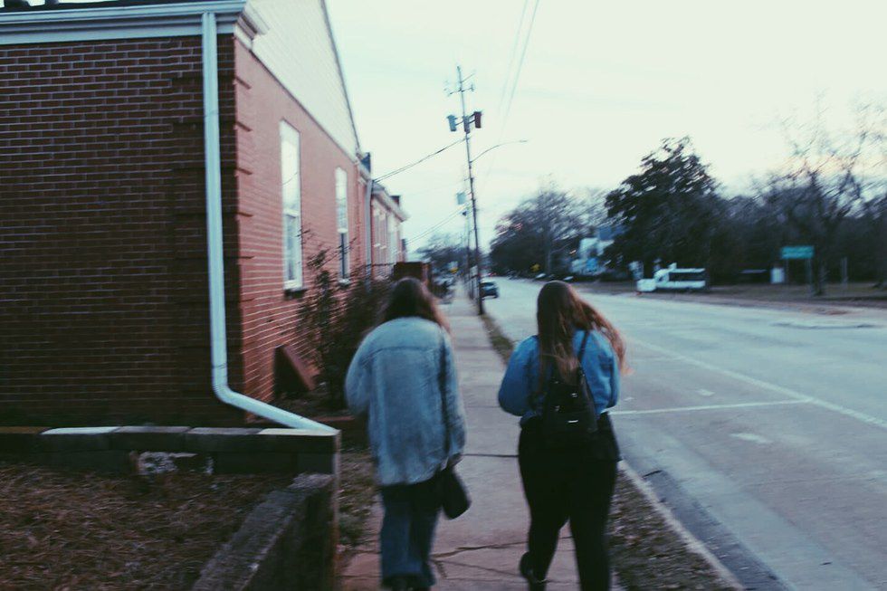 It's unseasonably warm in this suburban winter evening. The town is quite, still and refreshing. As we walk around, we find the beautiful in the ordinary. Camera in hand, we take photograph after photograph of each other, capturing the alluring qualities of our closest friends. With the new year before us, we belong to a euphoric state of mind, as we stand against brick walls and walk down the small-town suburban streets.
