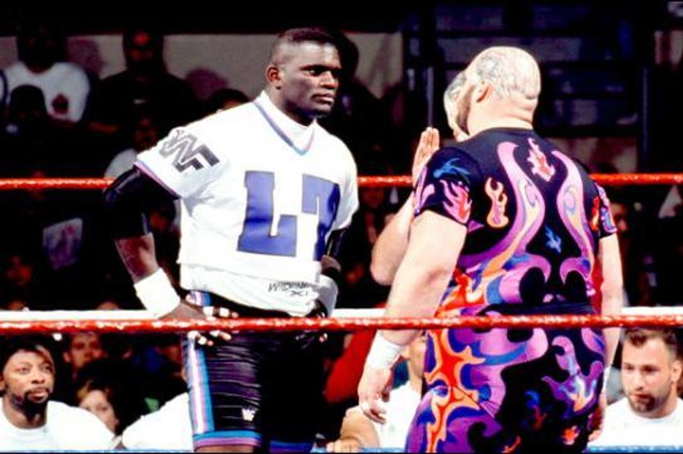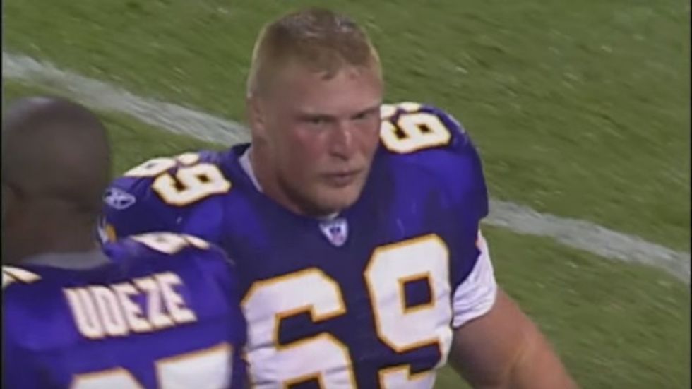 Many of WWE's top stars, including those in top matches at last week's show have either played professional football or come from a football background. Goldberg and Brock Lesnar, who fought over the Universal championship, both played in the NFL. Goldberg played for the Rams, Falcons, and Panthers, and Lesnar played in the preseason for the Vikings. Roman Reigns, the guy bestowed with the honor of retiring the Undertaker, played for the CFL's Edmonton Eskimos and had brief preseason stints with the Vikings and Jaguars. John Cena, who actually got engaged at "The Ultimate Thrill Ride," was an All-American center for Division III Springfield College. Bray Wyatt, who unsuccessfully defended the coveted WWE Championship, was an offensive lineman at Troy University.