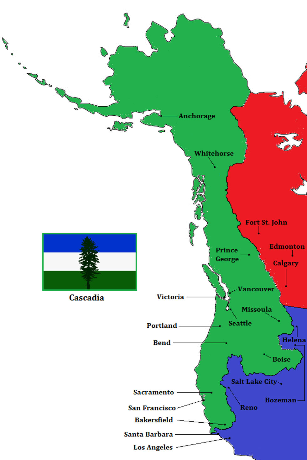 the creation of the Republic of Cascadia- a sovereign nation composed of