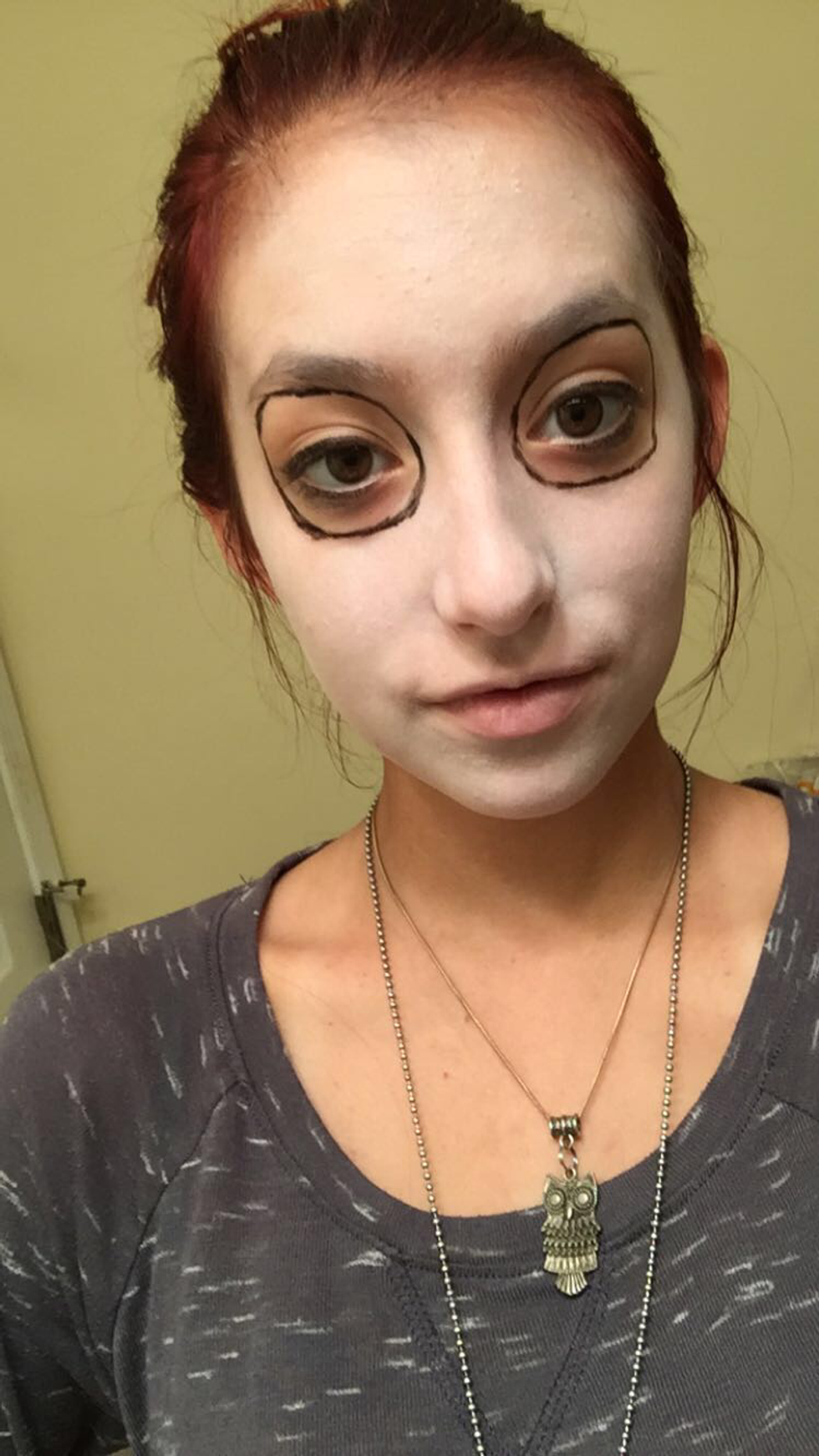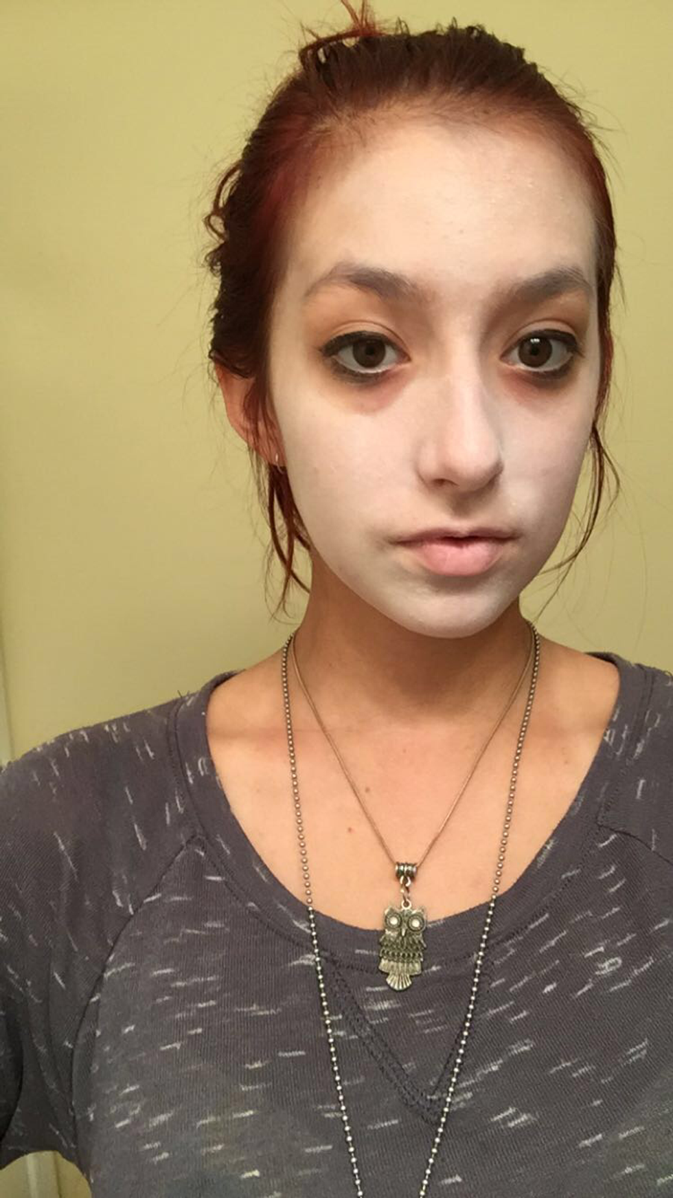 Clean your face and apply white face paint avoiding the eye area. You can make the white as bold or soft as you like.
