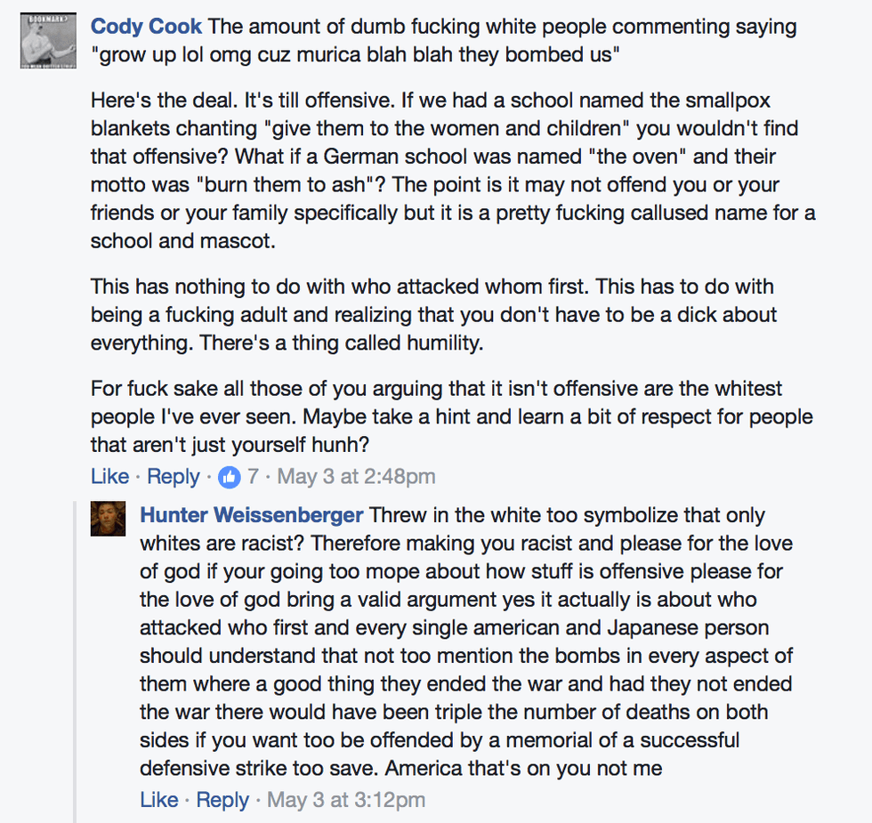 "I have been seeing this picture from a BuzzFeed article going around on social media this week and initially I was excited that so many people were finally socially conscious enough to post something critiquing an incredibly offensive but traditionally beloved aspect of Richland High School. However, what I have come to realize is that most people are slamming this post for calling out RHS on this issue and in regards to the support of Richland High's mushroom cloud symbol or any of the incredibly offensive slogans used at sporting events and as hashtags. I am genuinely baffled."