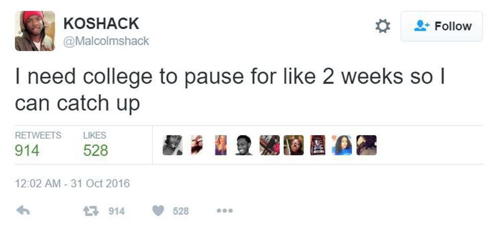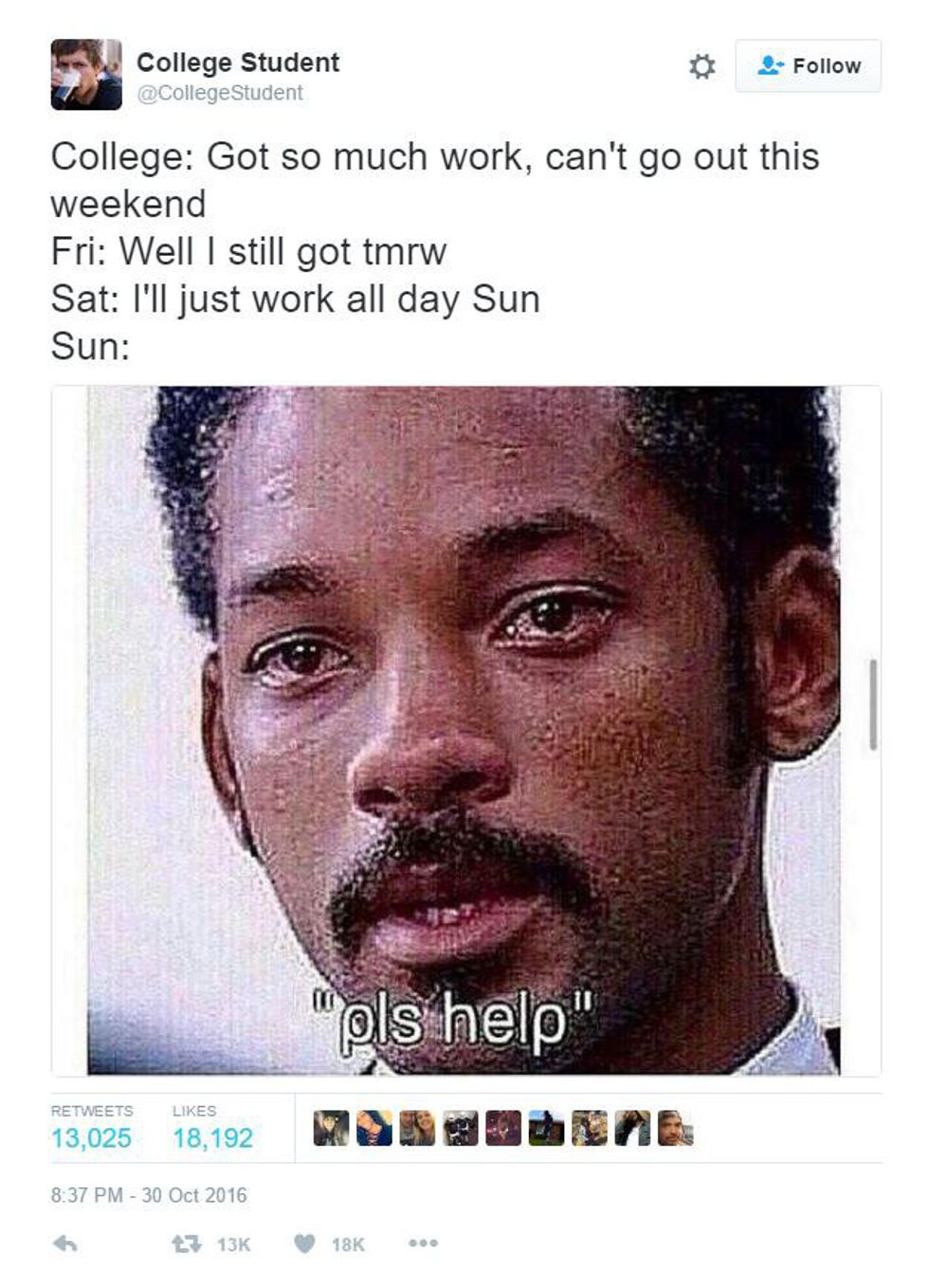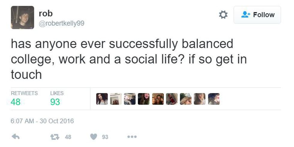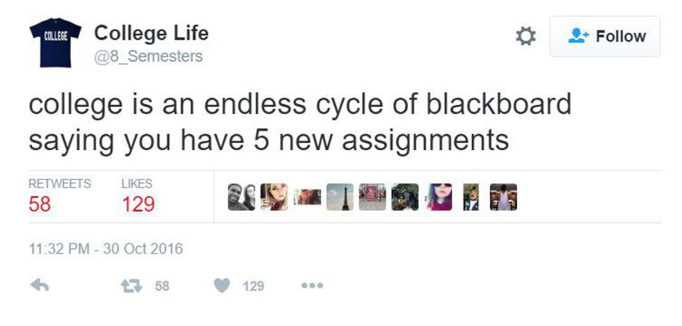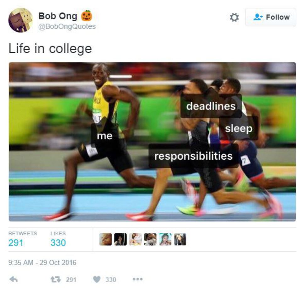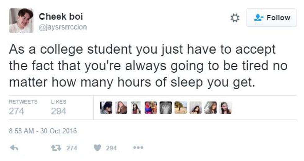 College students have many frustrations: tuition, difficult classes, too much to do, relationship problems, and more. It's hard to express your frustrations to others in person as they often are going through the same thing and don't want to hear you complain about it. So, us college students often take said frustrations to social media where no one will judge us but instead boost our ego up by favoriting and retweeting. Here are twenty-one tweets that perfectly summarize being a college student.