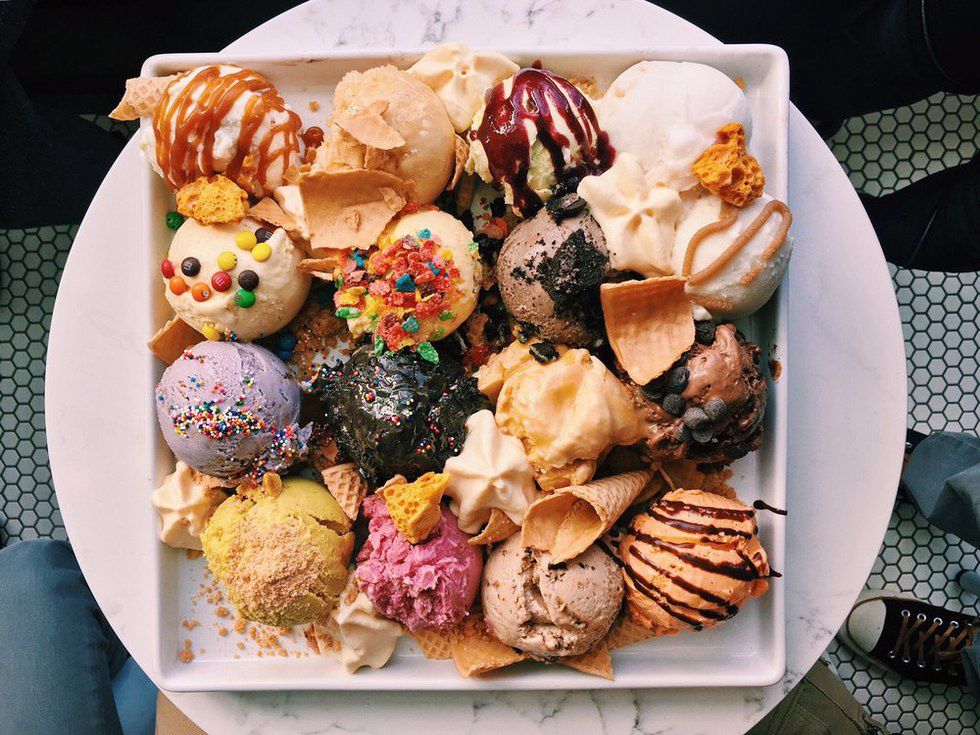 This is a photo of a place in Minneapolis, MN called Milkjam Creamery. They put ice cream between two halves of a donut -- weird, but so yummy, right? Take this summer to try wild and crazy new food! Go to tiny hole-in-the-wall places and order the weirdest thing on the menu. You never know until you try something!