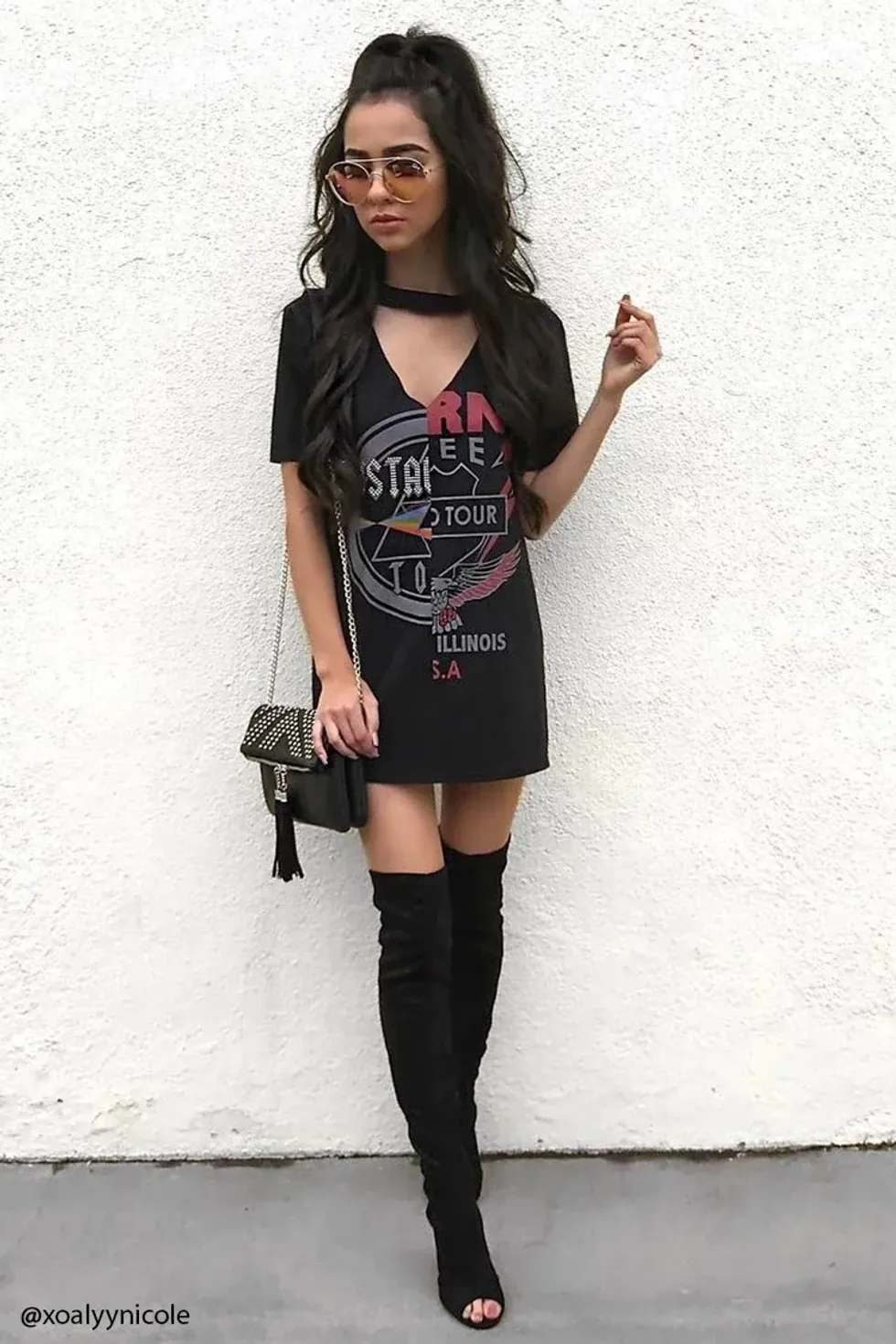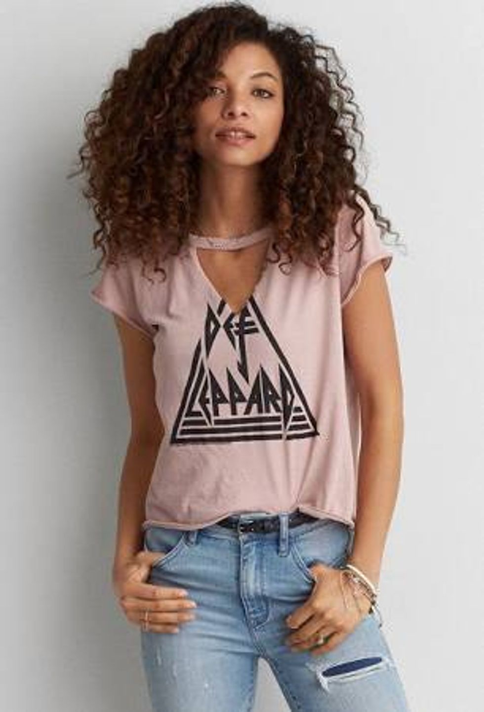 This is one of my personal favorites. I've been seeing vintage band t-shirts all over stores recently, all of which have been slightly altered to be more "stylish." This cutout of the neckline is the design I've seen the most and I think it looks super cute!
