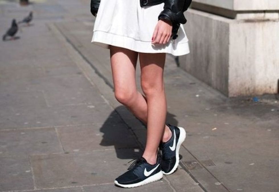 I've already done this look a few times to work, and I'm a huge fan. It's a great way to show your feminine and sporty sides at the same time, and can make a nice dress feel a bit more casual.