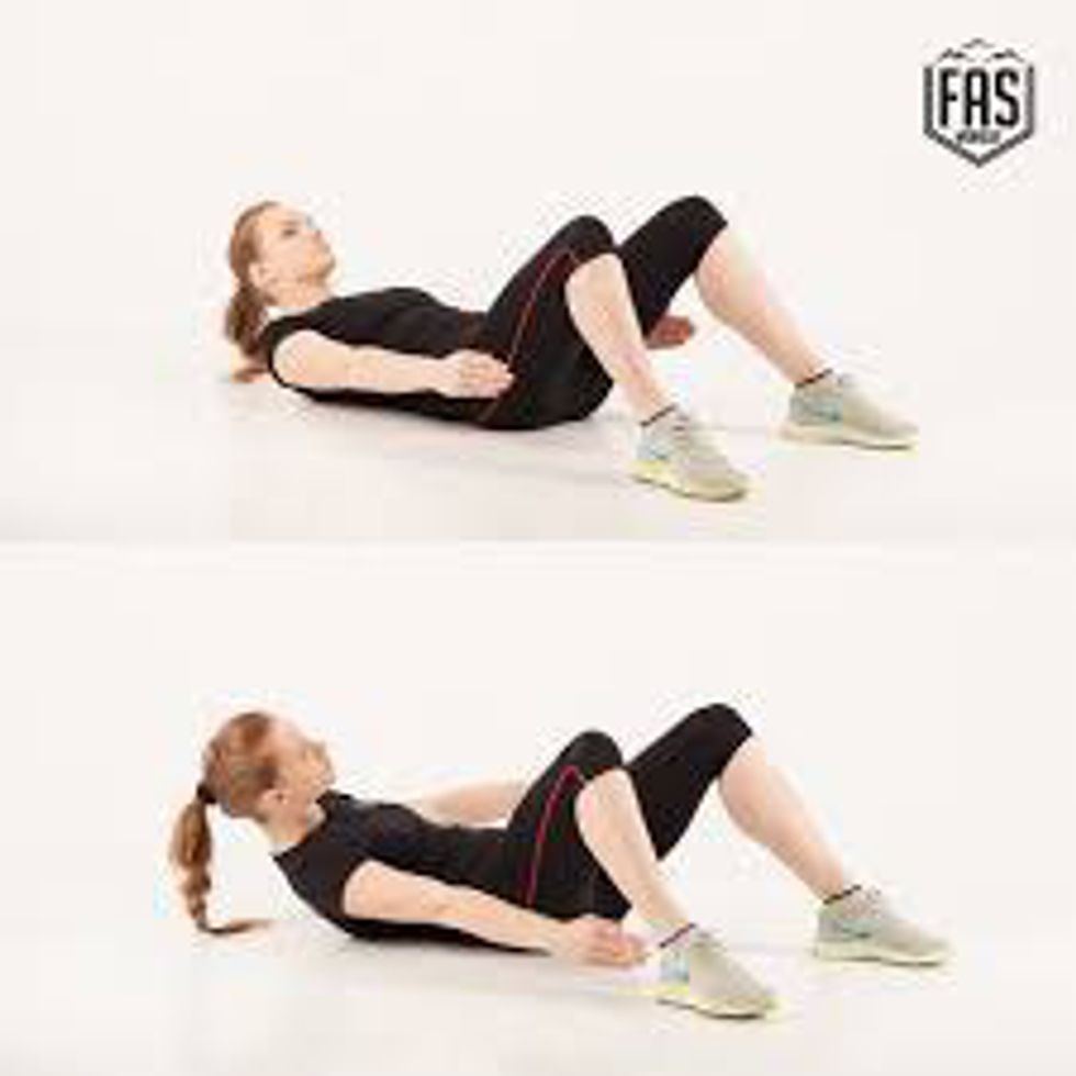 I know this seems weird to do, but it works a different area of your abs while also stretching out your back. When I first tried it, it was foreign to me because you're moving in the reverse way than doing a standard crunch. I recommend trying it especially if you have a bad back like me.