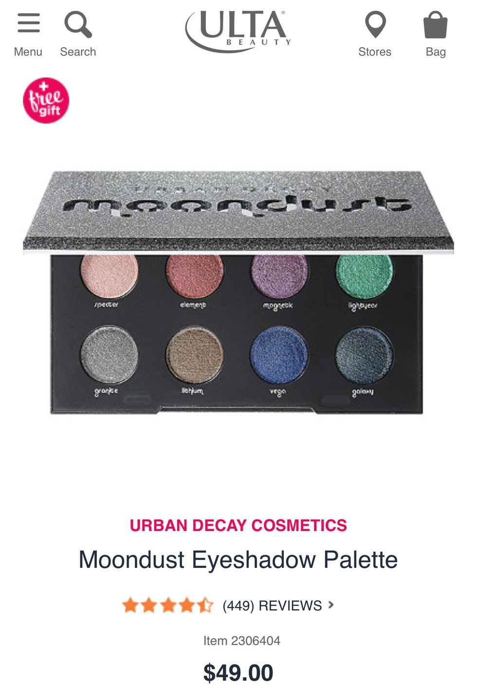 This palette has eight beautiful shimmer shades, ranging from a light pink to a dark blue. It's perfect for whenever you want to add a bit of shine to an everyday look or for a quick trip out. It's fancy without being too fancy-- perfect for summer. Specter is my personal favorite shade, especially layered over tan.