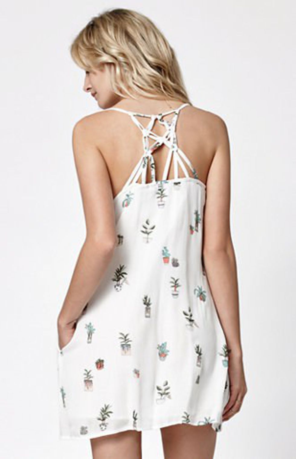 Above: OBEY Paint Bloom Macrame Back Dress, $58.00 (PacSun)