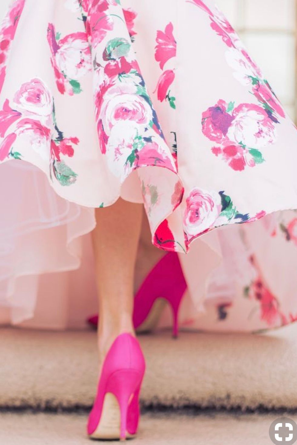 I am a firm believer that a color can absolutely be a fashion trend, and in summer 2018 I'm seeing fuchsia. There is something bold and invigorating about such a deep pinky purple; it's a standout color, no doubt. The gorgeous dress above balances such a fearless color with white and pops of green to make a softer and girlier look.