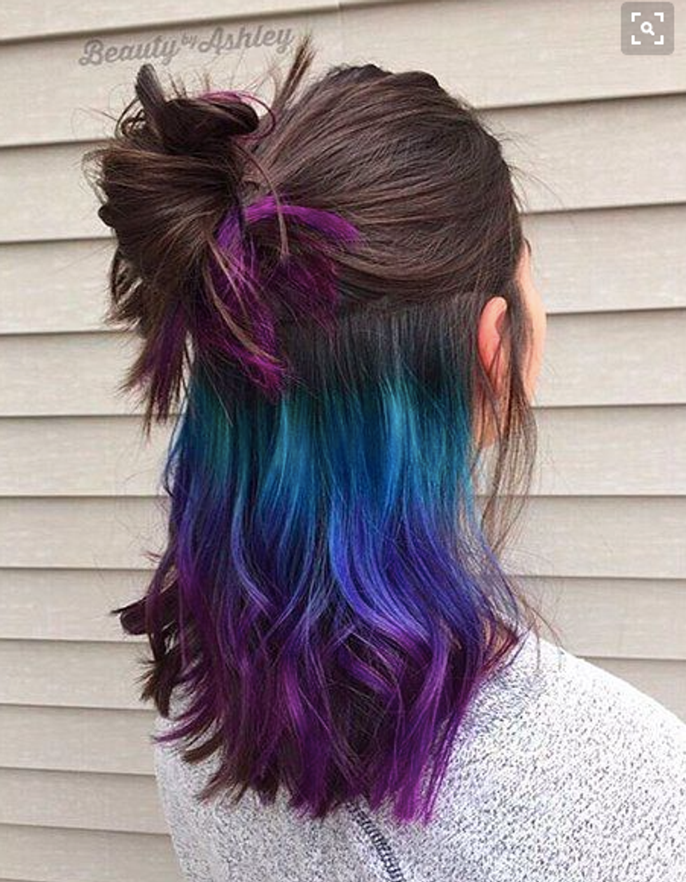 Coloring your hair a un-natural color is every girl’s rebellious dream, and with these under-lights, dreams do come true. You have your blue hair and still go to work everyday. the color is easy to hide and fun to show off when the time is right.13. Rose Gold