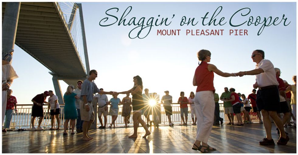 Shaggin' on the Cooper is an event where people of all ages can buy tickets to shag under the Cooper River Bridge. It takes place on the Mount Pleasant pier and includes live music from local bands, food and drinks. Both families, couples, and friends crowd the pier for a carefree night of dancing.
