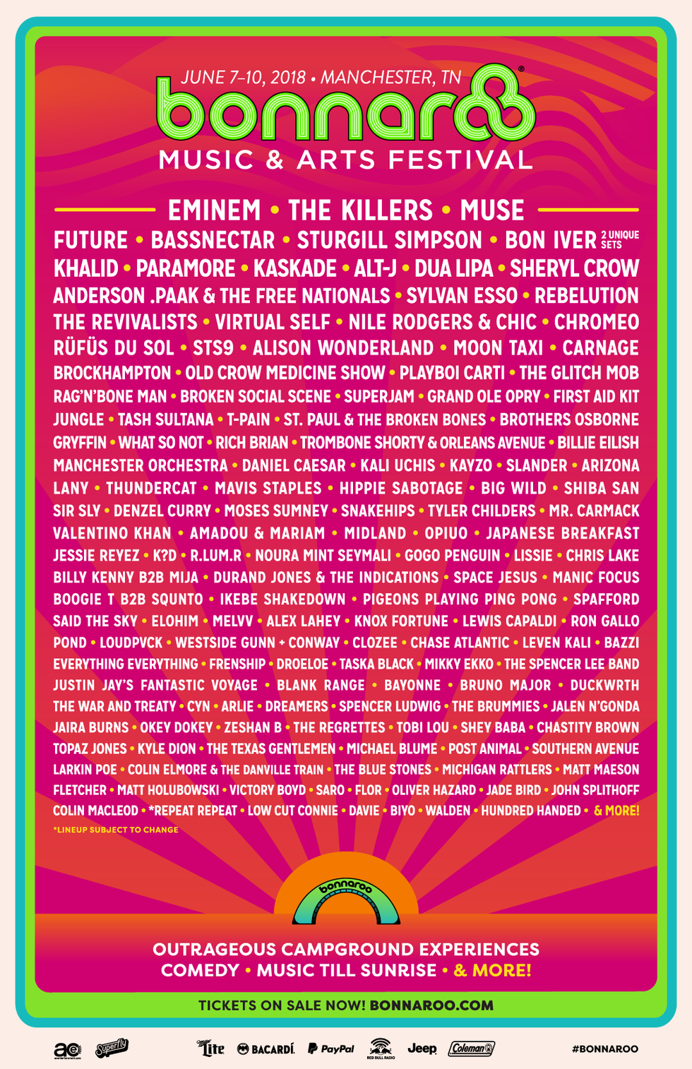 Eminem and The Killers again! These two are very popular at music festivals this year it seems! Bonnaroo is one of the most fun music festivals in the south. Located just 60 miles south of Nashville, this is the perfect place to spend some time camping and enjoying all day concert festivities!