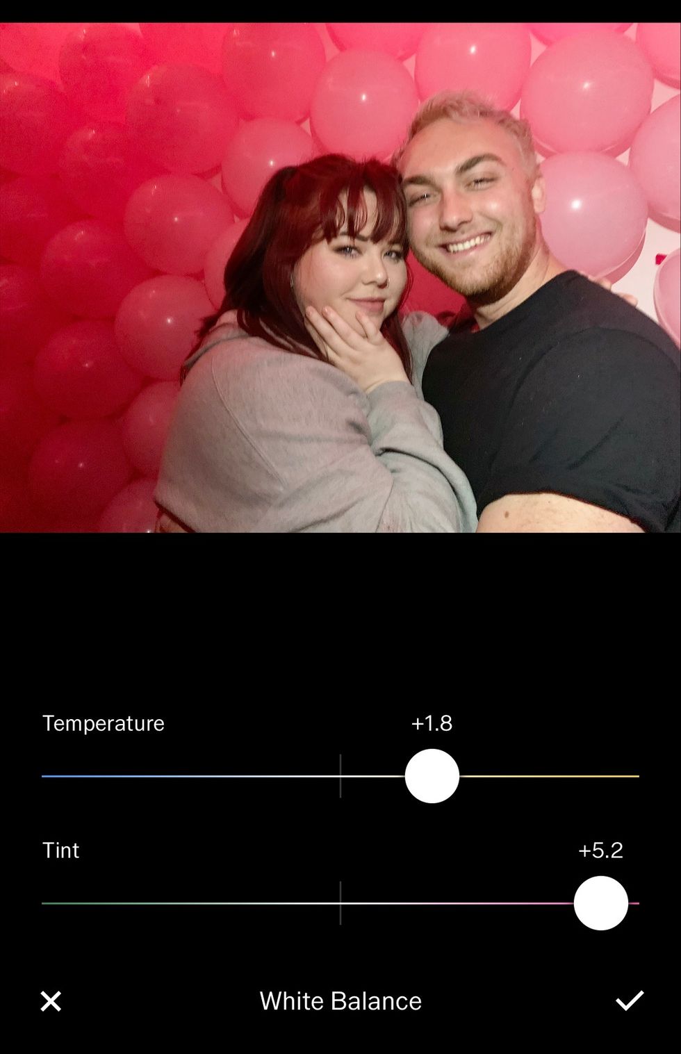 White balance helps you with either fixing certain tones in the photo or manipulating them toward a certain color theme. With my photo, I want the pink tones to stand out, so I made the photo a lot warmer by moving the dots toward the pink and yellow side of the spectrum.