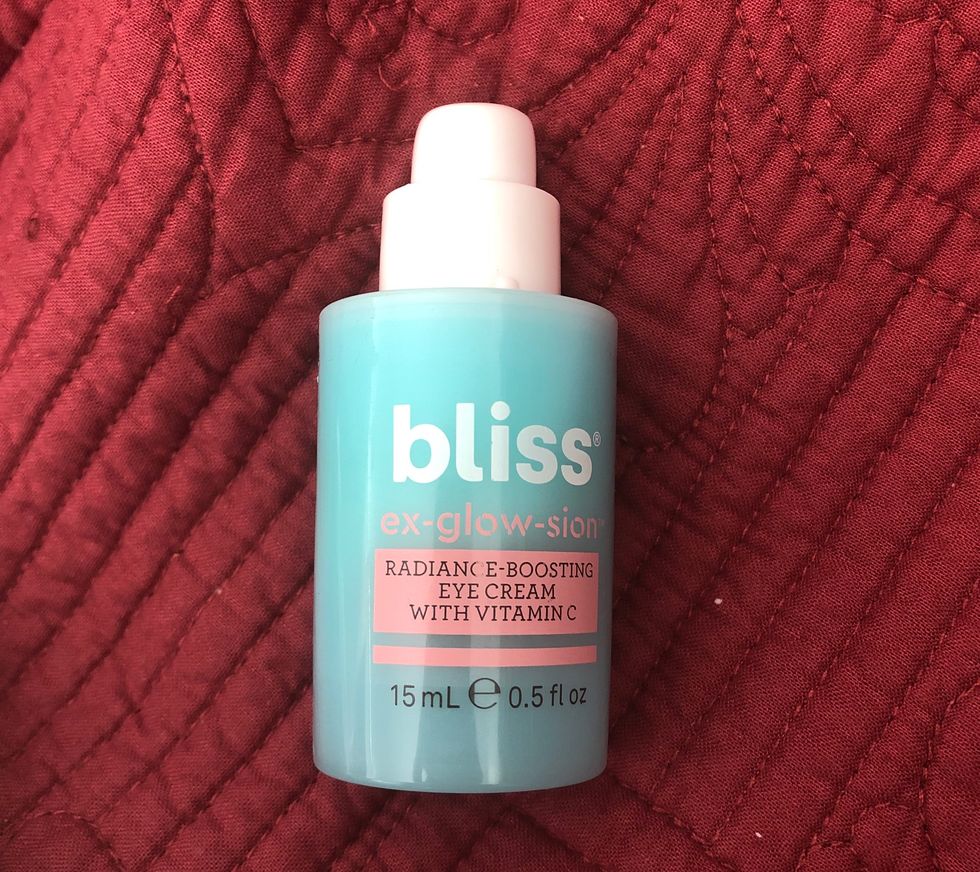 I am a college student which means I hardly get as much sleep as I would like. I use the Bliss Ex-Glow-SIon eye cream under my eyes to help brighten my dark circles, especially after nights where I barely slept or on the days that I have an 8:30 am class.