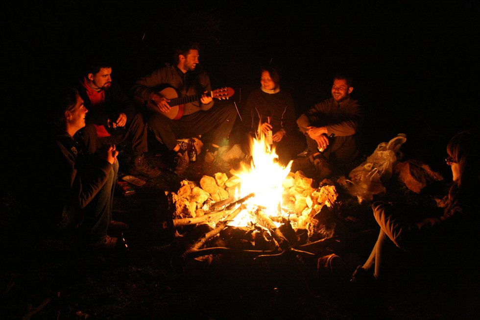 Dancing around campfire