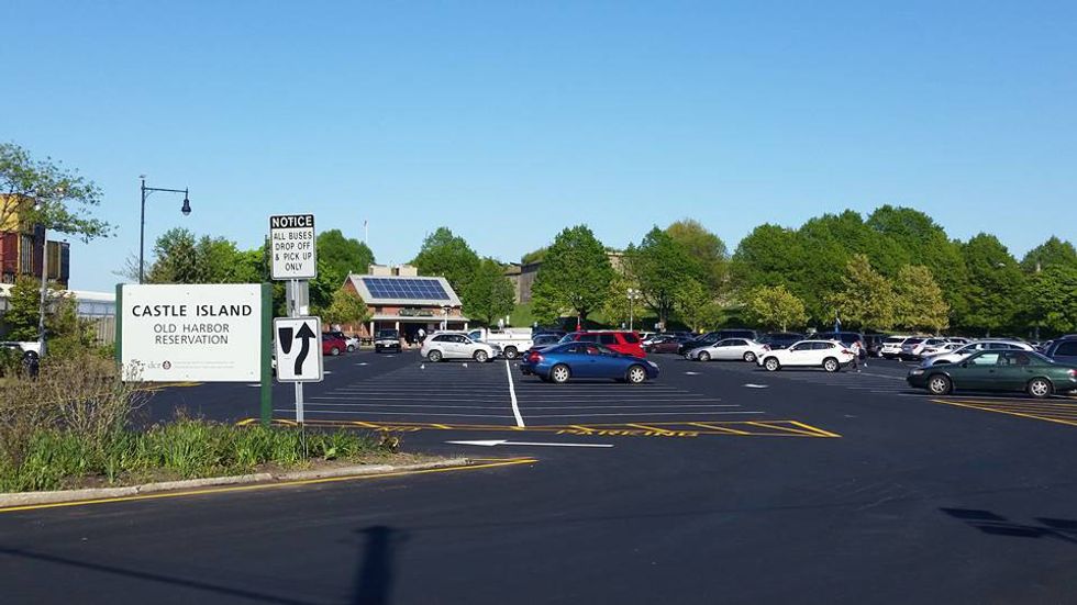 Here we are: the entrance of the island. On a nice weekday afternoon or weekend day, you may find that the parking lot is full. However, when the weather is not as good, there may actually be more seagulls than cars on the pavement.
