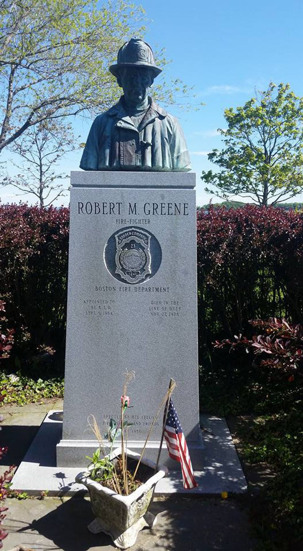 There is a memorial of Robert M. Greene, who was a former Boston firefighter that passed away from multiple injuries after he fell from a building on Alpha Road on November 27, 1978. He had 14 years of service.