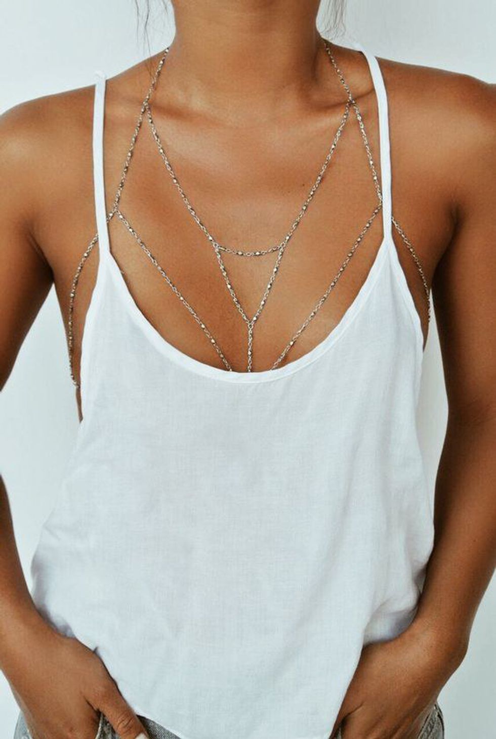 These necklaces were all the rage at Coachella and they are going to be trending all summer long. The intricate look pairs well with a loose tank, bralette or crop top.