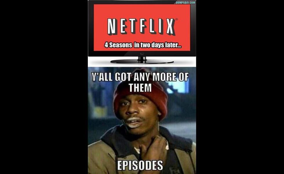 Binge-watch. Go on Netflix. Take a look at a couple of shows. Here's a couple of recommendations: Daredevil, Vikings, Arrested Developed, Game of Thrones, Orange is the New Black, How to Get Away with Murder, Luke Cage, American Gods, etc.