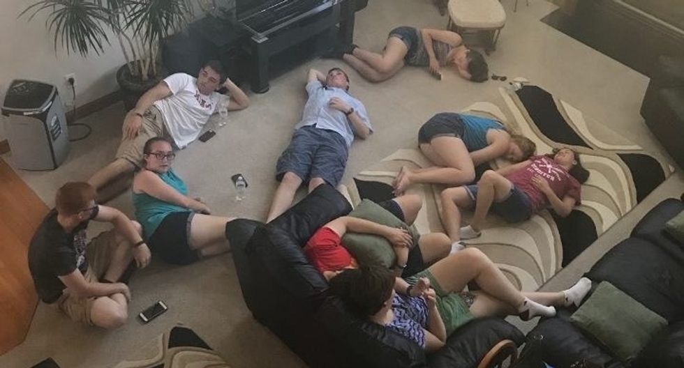 If a squad is ready for bed, then they'll definitely want hugs goodnight. They'll part ways for the evening, but they'll be ready for more adventures in the morning. If a squad is ready for more adventures, then they'll probably go on a donut run before their morning hike. Hikes, however, require energy, so the squad lays on the floor for a while, yet again, before leaving.