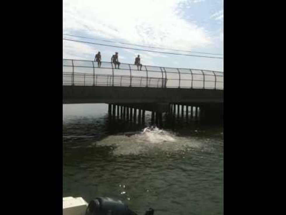 High tide and warm water are the perfect combination for bridge jumping.