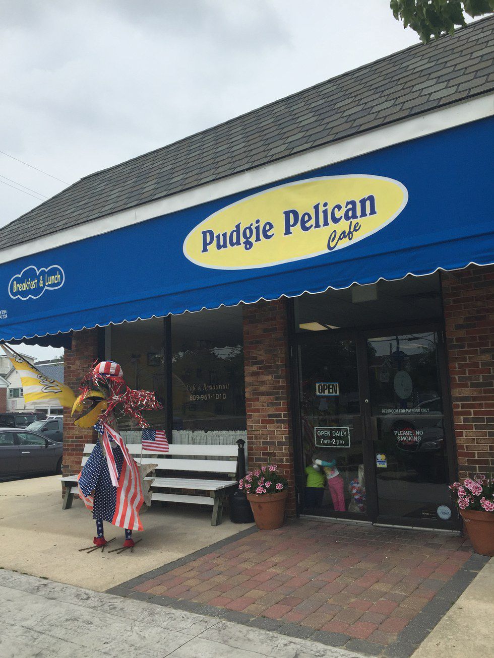 My first job was at the Pudgie Pelican Cafe. Yes, there is indeed a giant, "pudgie" pelican outside of the establishment, and yes, its attire changes according to the weather, holiday and sports season.