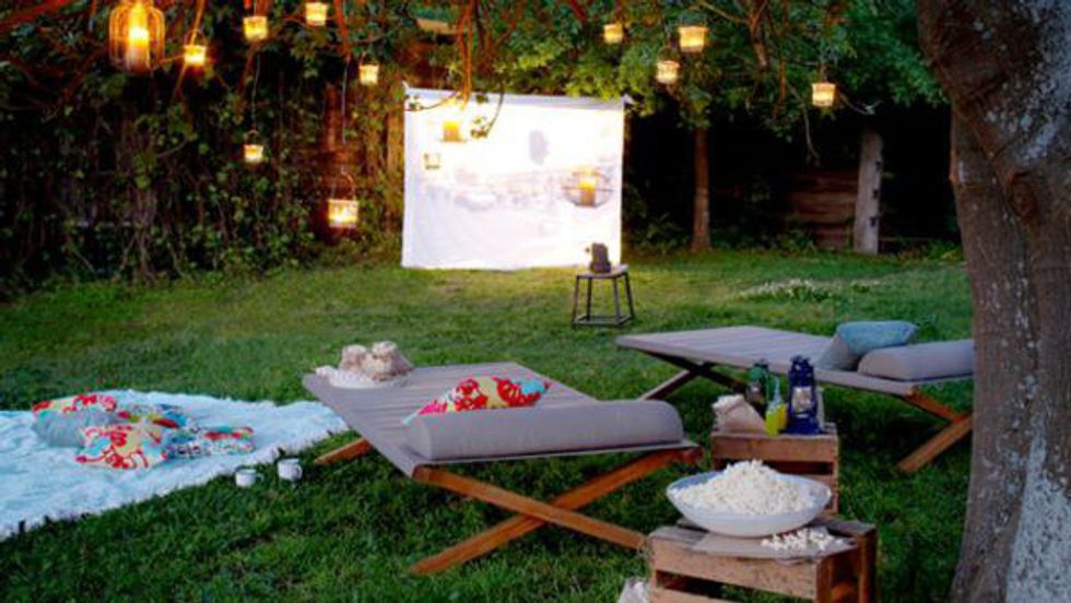These screens are so easy to make! All you need are some PVC pipes, a sheet, and some clips. Then grab a projector and your favorite movie and you're good to go.