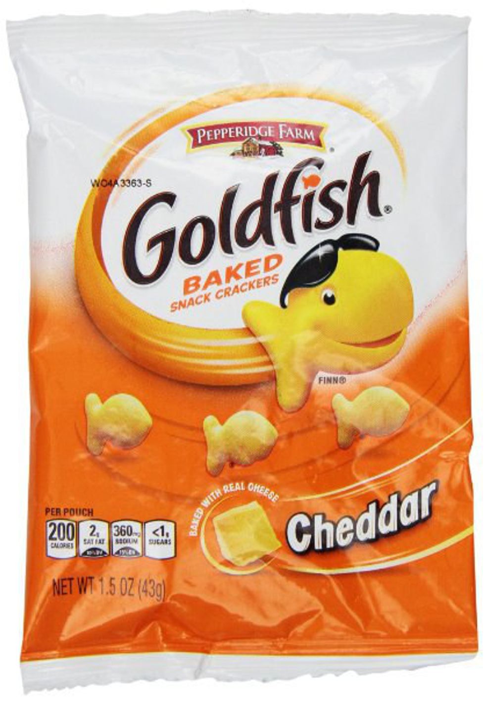 Goldfish are a really basic, but lovable snack. The colored and pizza flavored ones are extra fun.