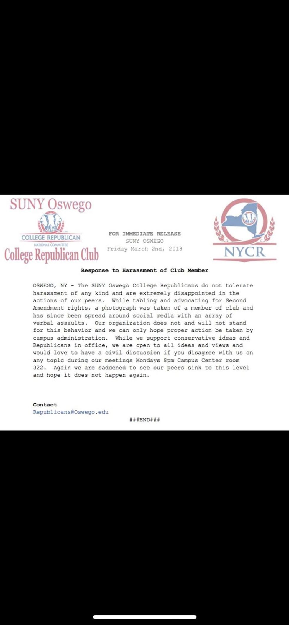 This was an amazing message that they released to save face for what actually occurred at that table. They’re making it seem as if the photo went around because of people arguing about “Second Amendment rights” when really one of your club member’s shirt has grasped our attention as students who will be affected by Trump’s policies and decisions. The message ends with an invitation to their club meetings which takes place on Mondays at 8pm in Marano Campus Center in room 322. Unfortunately that Monday I couldn’t attend but a friend of mine went and told me that they spoke of a couple things and then ended the meeting early. She glanced at their slides and saw the entire presentation looked ready. So why end the meeting early? More important what was on the rest of those slides?