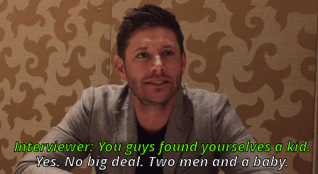Jensen talks about the brother's disagreement about how to deal with Jack and reiterates Jared's sentiment that the brothers are not at odds with each other like we have seen in previous seasons. While they initially have different ideas on how to approach the situation, they will "eventually get to the same place" by different routes. Jensen refers to it as "Two Men and a Baby," and says that Dean will allow Sam to do things his way but if anything goes wrong they're going to handle it Dean's way.