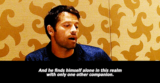 Misha says that when fans first see Castiel back on the show (alive) he is in a place that the show has "speculated about" but that we haven't seen yet (fans so far wonder if Misha is referring to The Empty). He also says that Castiel will be confronted by a "powerful being," who is played by a "great actor" and is "exceedingly handsome."