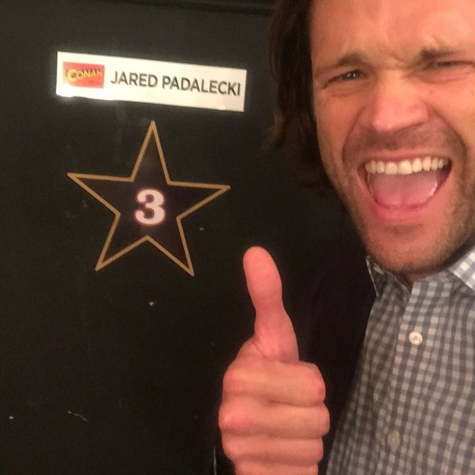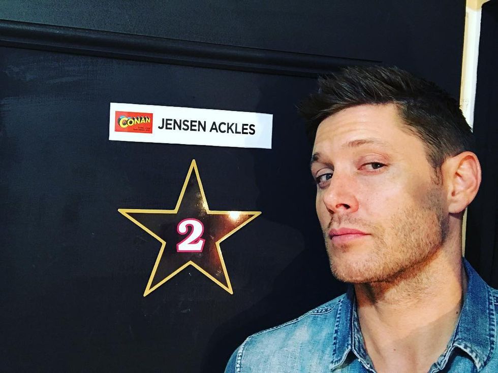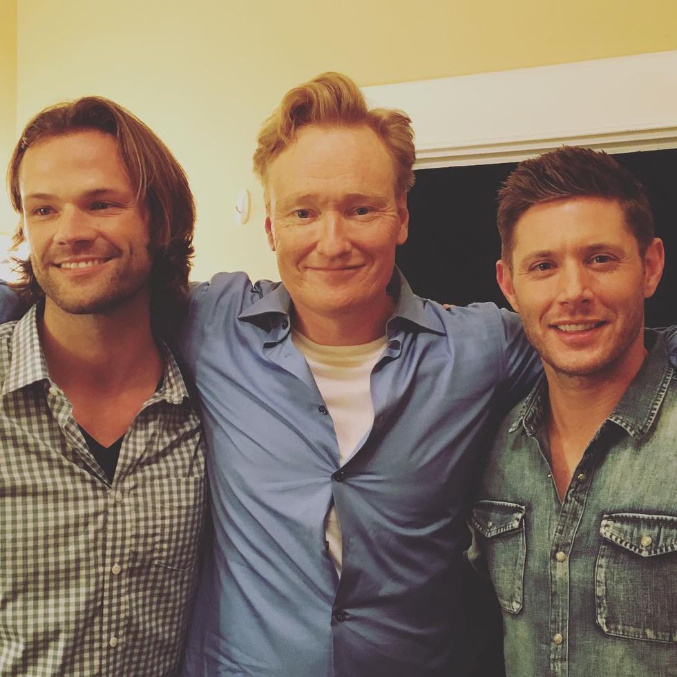Jensen posted a photo of he and Jared with Conan on his Instagram along with the caption: "Backstage after the show...good times. Enjoy the birthday surprise we gave @jaredpadalecki tonight."