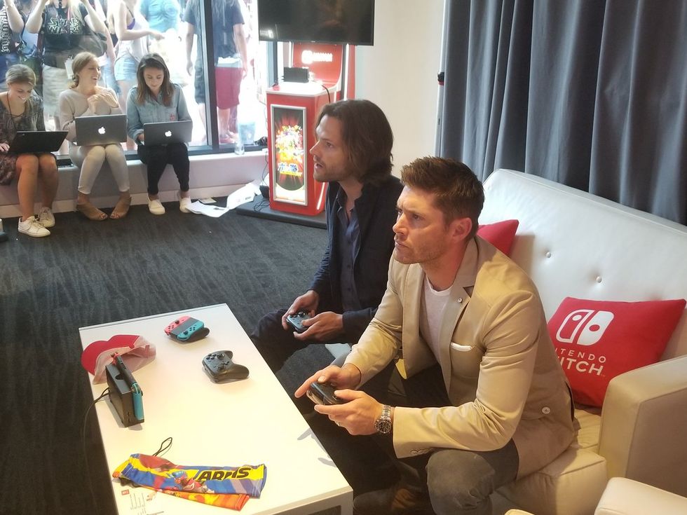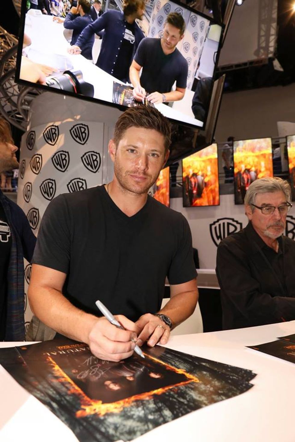 During the panel, Jared and Jensen talked about being proud of a project that has lasted as long as "Supernatural" has. Jensen particularly enjoys that they never tell the same stories twice. Jared was blown away to look out at the crowd of fans after 13 years and see that support. They were asked about the boys playing video games on Friday and who won. Jensen was cranky because they didn't get to finish and he had been winning "Mario Kart."