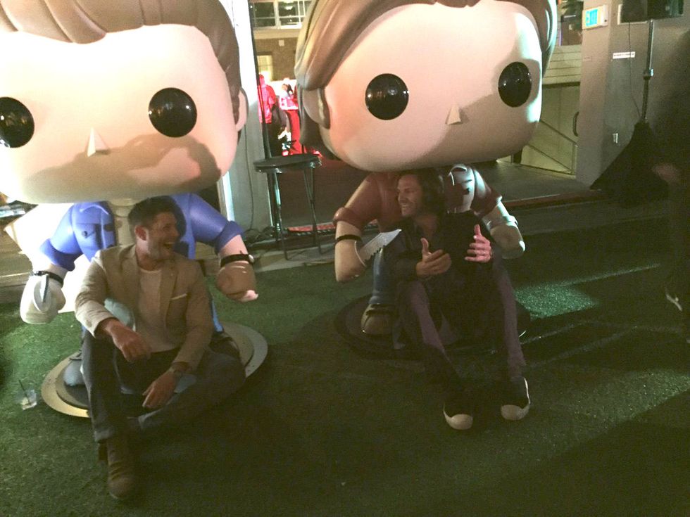 They wrapped up the big night at the WB's Media Mixer, where Jared and Jensen-and their life-size Funko Pop doll counterparts-were the highlight of the evening as they took pictures with fans, actors and reporters as they mingled with stars, crews and bosses from the WB/CW.