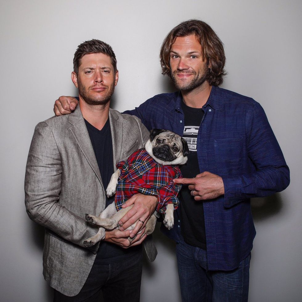 Before the panel, Jared and Jensen had the opportunity to take a picture with Doug the Pug who was geared up like a proper Winchester.