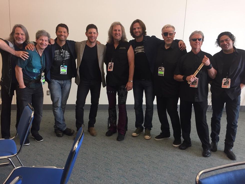 An introductory video of Jared and Jensen in character as Sam and Dean started the panel in Hall H once the crowd filtered in. The lights dimmed and the show's unofficial theme song, "Carry On Wayward Son," began to play. The large room erupted in deafening cheers as the lights came up to reveal the band Kansas up onstage playing their famous hit. The musicians were as excited to finally meet the cast of "Supernatural" as everyone was to see them, and were honored to play the song for the fans in Hall H.Jared, Jensen and Misha watched the performance from the back of the room. Former cast member Osric Chau (Kevin Tran) was in the crowd and posted the spectacular panel opening on his YouTube channel: