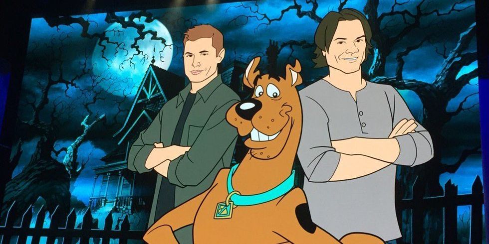 The cast was also excited about the highly anticipated "Scooby-Doo" crossover episode. Jensen said that he, Jared, and Misha did the voiceover work "back in February." The episode begins with the usual live-action, and then the characters will find themselves thrust into the animated "Scooby Land" for the majority of the episode, including Dean getting the chance to meet Daphne and might "try to put the moves" on her.