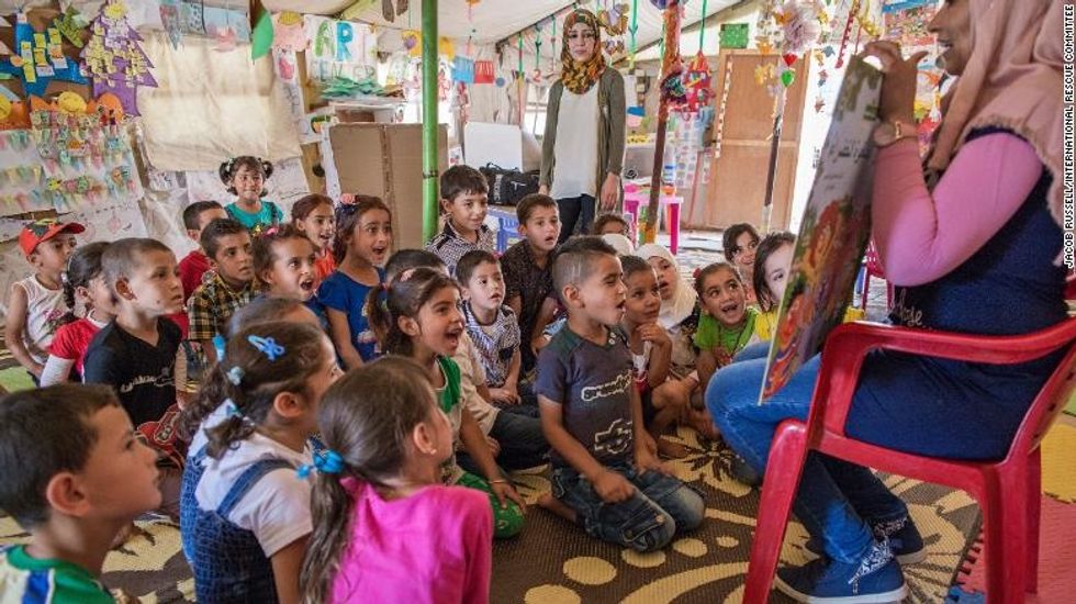 The program also provides direct services delivered by the IRC by visiting children whether it be in a shelter, tent or apartments in Iraq, Jordan, Lebanon, and Syria to work with children face-to-face. There volunteers and caregivers teach and interact with the children through videos, stories, puzzles, and games.