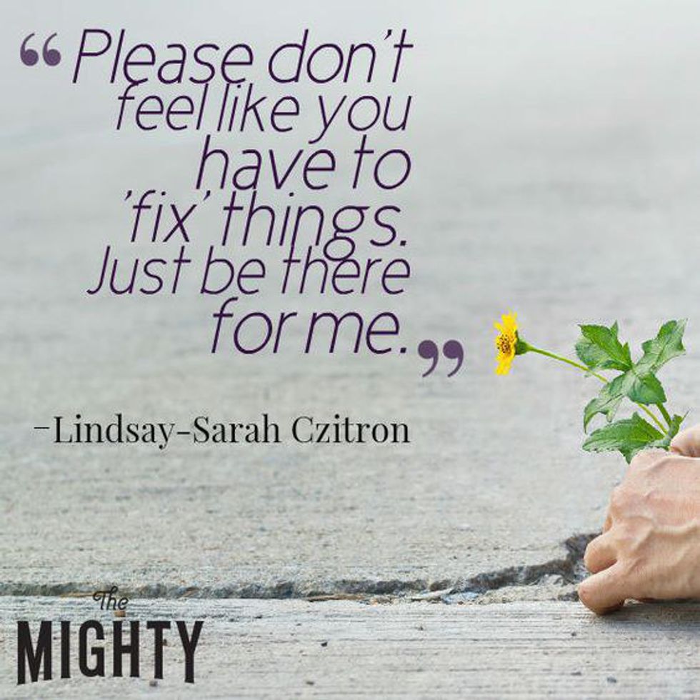 Human beings have an innate desire to be empathetic. We want to help each other using our own experiences as a guideline. As a supporter, you may feel frustrated at yourself for not being able to do this. Here is the thing though: we do not expect you to. You may have questions or you may not know what to say. Being there for somebody does not mean you have all the answers all the time.