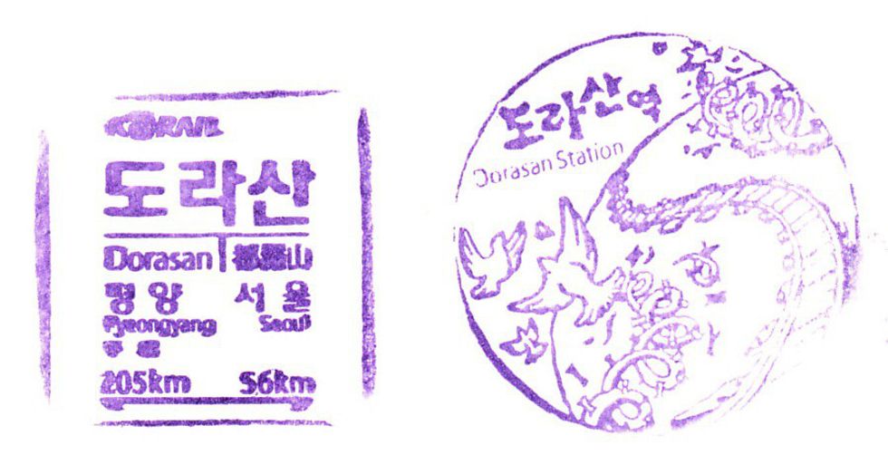 I visited Dorasan Station, the South Korean train station closest to the Demilitarized Zone (DMZ) between North and South Korea. The station is no longer active, but stands as a symbol of hope for unification. If Korea is one day unified, this railroad will link the two countries. Visitors can use the commemorative stamp that looks like a ticket from Pyeongyang (the capital of North Korea) to Seoul. The train schedule board reads, “To Pyeongyang.”