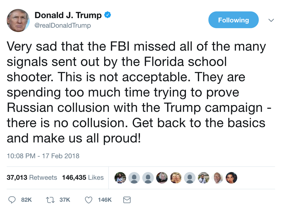 In a tweet storm on Saturday, February 17th, Trump unraveled and rattled off eight tweets addressing Russian collusion, DACA, and the shooting.