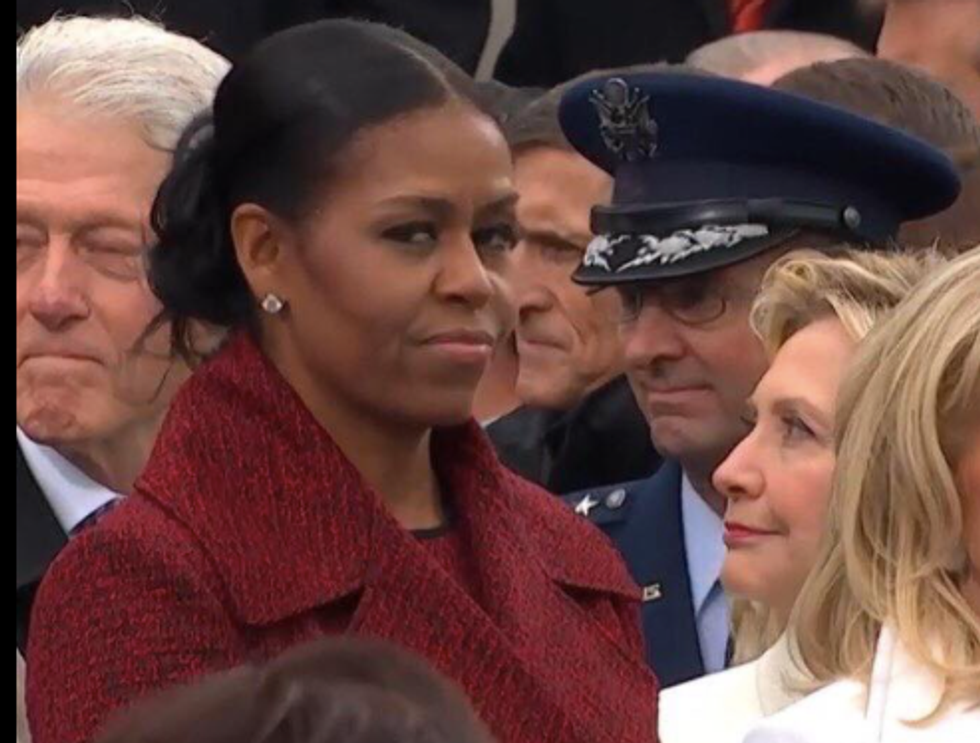 If the face doesn't say everything already. Mrs. Obama let us know how she felt about Trump's inauguration with the stank face seen 'round the world. This disapproving "mmph" generated a lot of buzz and even a quick comment from SNL's "Weekend Update" which is notoriously known as the President's favorite show. Michelle Obama could be living up to her Secret Ruler of the World potential with this break-in. Whatever it is, we support you, Michelle.