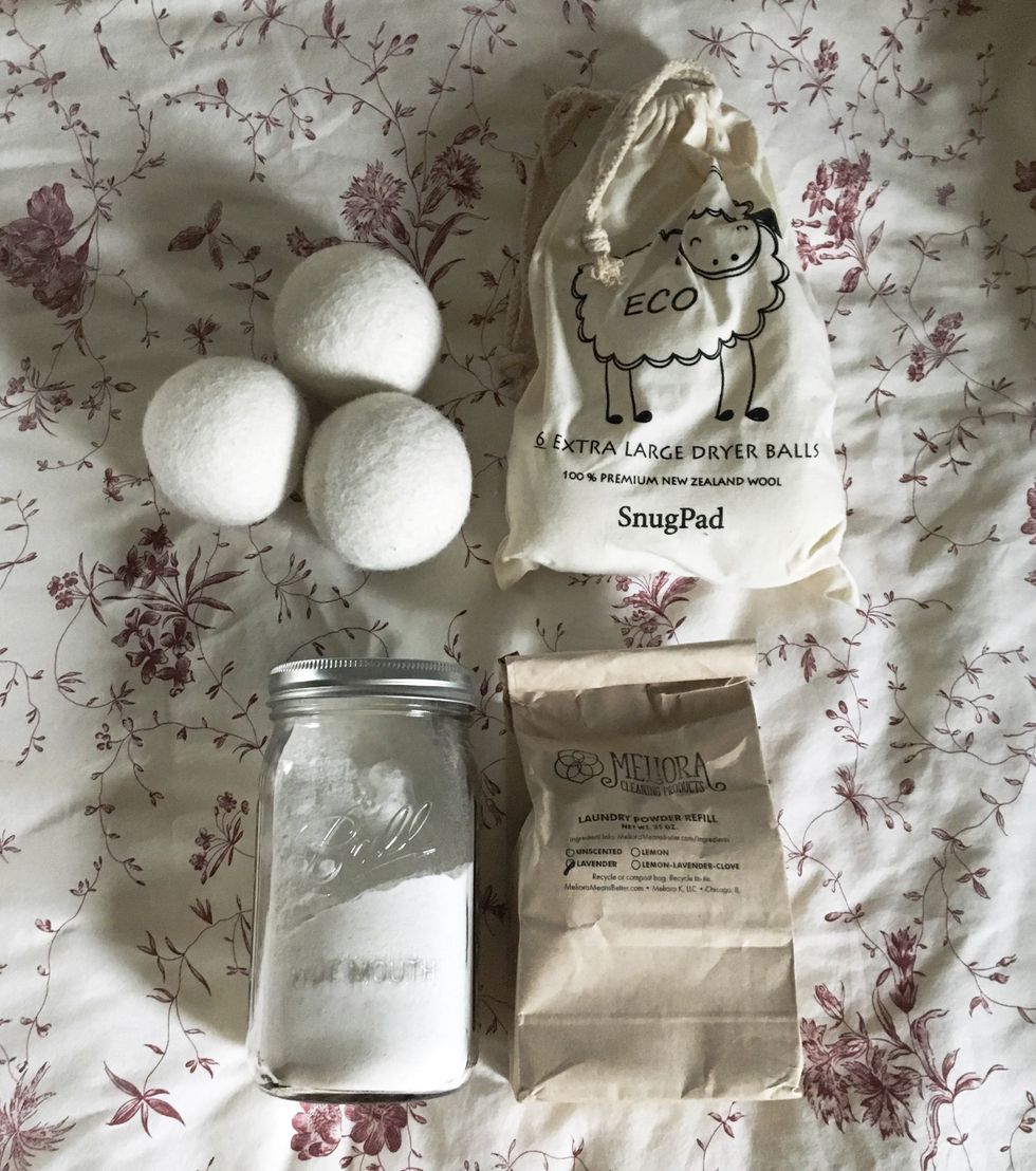 To reduce my use of plastic I went for an alternative to the huge Tide or Arm & Hammer plastic tubs, I bought powdered detergent! The company I purchased from was "Meliora Cleaning Products." I also replaced dryer sheet with wool dryer balls that can be reused more than 100 times!