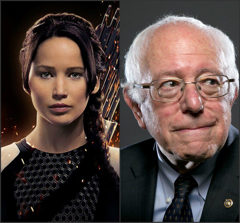 He started off watching from afar as Mayor of Burlington, trying to keep his little piece of the world well, just like Katniss. He did a lot of things the big government didn't like, a lot like Katniss. Then, his Hunger Games began, first as a senator, then as a presidential candidate. He revealed to the world how messed up the system really is and started to fight it. He is an icon for the "political revolution," much like the Mockingjay herself. Win or lose, things will be different because he was a part of this election - nearly identical to Katniss and her part in The Hunger Games.