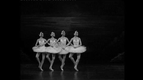 Rothbart calls the other swan/girls to the stage, and they all come out to dance as big flock. This is the part that most people are familiar with; picture the four girls in the white tutus with intertwined arms galloping back and fourth on stage.